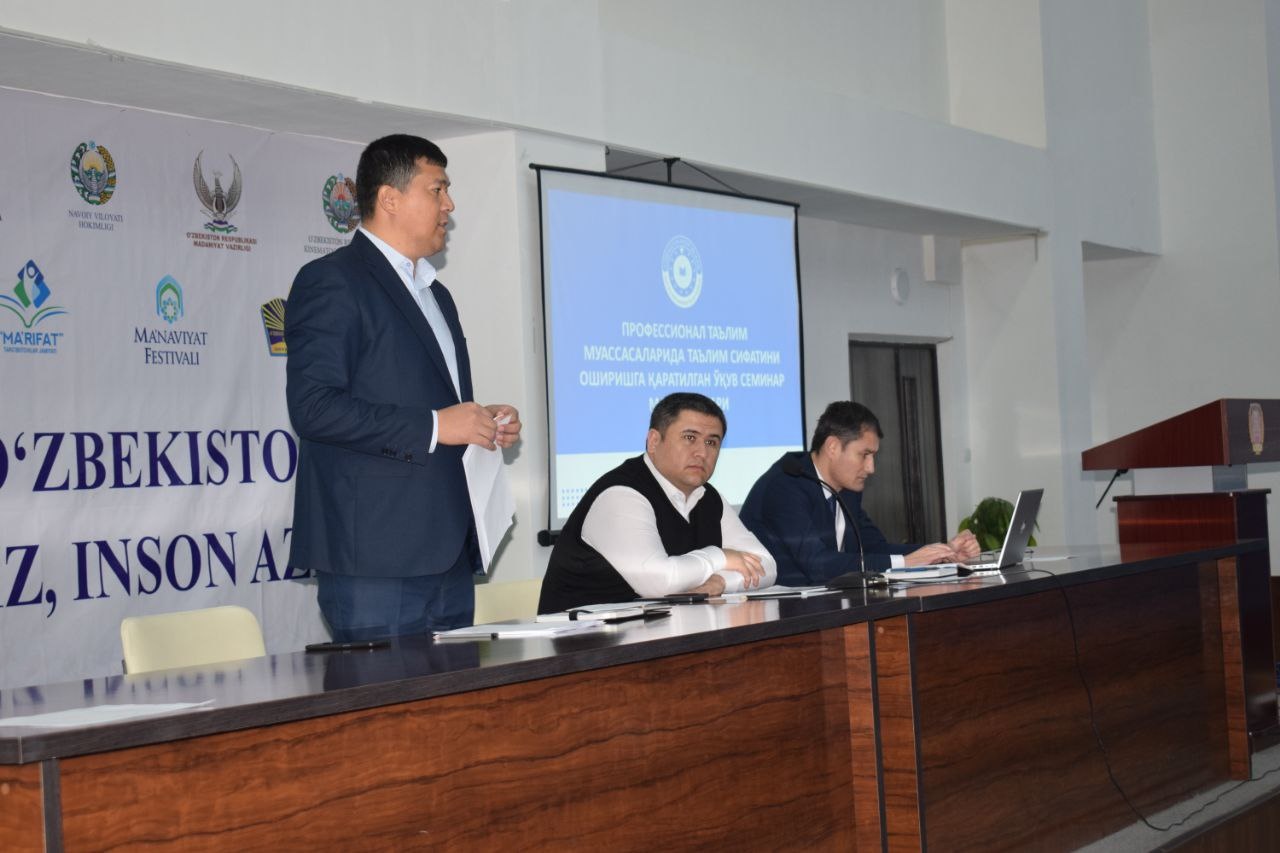 Oliy va oʻrta maxsus taʼlim vazirligining 2022-yil 22-dekabrdagi "Professional ta'lim muassasalarida ta'lim sifatini oshirishga qaratilgan o'quv seminarlarni tashkil etish to‘g’risida"gi 419-sonli buyrug’i ijrosini ta’minlash yuzasidan joriy yilning 27-dekabr kuni Oliy va oʻrta maxsus taʼlim vazirligi hamda Navoiy viloyat Kasbiy ta'limni rivojlantirish va muvofiqlashtirish hududiy boshqarmasi tomonidan Navoiy yuridik texnikumida o‘quv seminar tashkil etildi. Seminardan ko'zlangan asosiy maqsad O‘zbekiston Respublikasi Prezidenti Sh.Mirziyoyevning 2022-yil 20-dekabr kuni Oliy Majlis va O‘zbekiston xalqiga yo‘llagan Murojaatnomasida ko‘tarilgan ustuvor yo‘nalishdagi vazifalar mazmun-mohiyatini professional ta’lim muassasalari rahbar va pedagog-kadrlari o‘rtasida keng targ‘ib qilish, qishki ta’til davrida viloyatidagi professional ta’lim muassasalarida ta’lim sifatini oshirish bo‘yicha tizimli ishlarni tashkil etish, o‘qitishning zamonaviy shakllari va usullarini o‘quv jarayoniga joriy etishdan iborat. Oliy va oʻrta maxsus taʼlim vazirligining Kasbiy ko'nikmalarini shakllantirish bo'limi boshlig'i F.Tursuqulov va E.Ergashovlar tomonidan seminar ishtirokchilari uchun profesional ta'lim tizimiga oid ma'ruzalar tashkil etildi. Ushbu seminarlar qishki ta’til davrida barcha profesional ta'lim muassasalarida boshqarma xodimlari ishtirokida tashkil etiladi.
