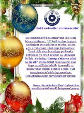 Prezidentimiz tomonidan ilgari surilgan "Besh tashabbus" loyihasining 4-bandi ijrosi yuzasidan Respublikamiz bo'ylab o'tkazilayotgan "Yosh kitobxon" ko'rik-tanlovida Qiziltepa tuman 2-son kasb-hunar maktabi matematika fani o'qituvchisi Xosiyat Gʻafforova tuman bosqichida faxrli 1-oʻrinni egallaganligi munosabati bilan tuman hokimi U.Fayziyev tomonidan estalik nishoni va qimmatbaho sovgʻalar bilan taqdirlandi.