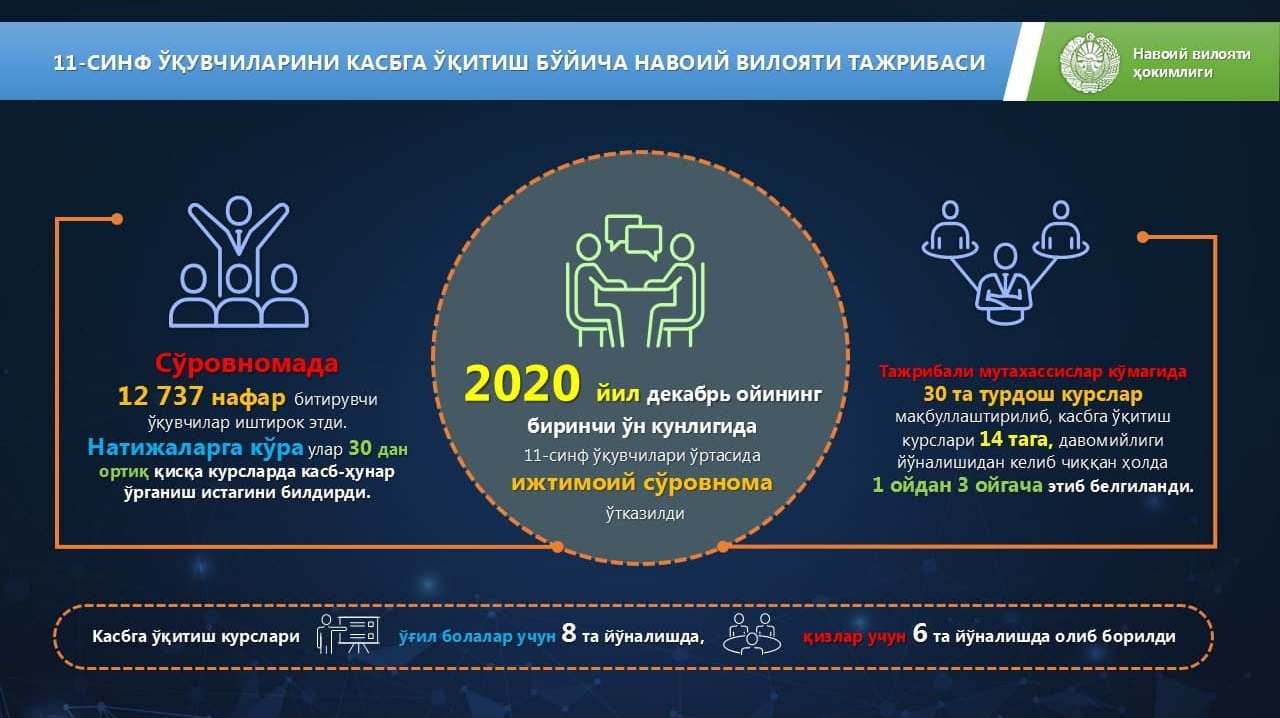 11-синф ўқувчиларини касбга ўқитиш бўйича Навоий вилояти тажрибаси