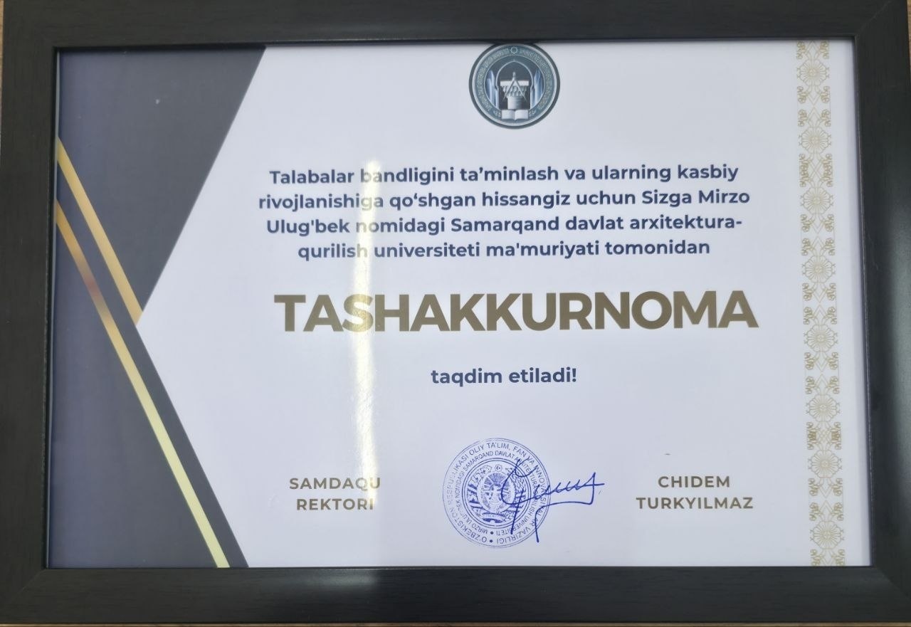 👉 hamda bino va inshootlar qurilishi yo‘nalishi bitiruvchilari ham faol ishtirok etib, tashakkurnoma bilan taqdirlanishdi