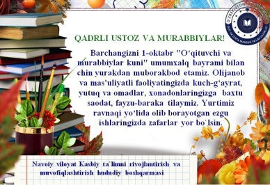 2022-yil 22-avgust kuni Viloyat Kasbiy ta’limni rivojlantirish va muvofiqlashtirish hududiy boshqarmasi Navoiy shahar kasb-hunar maktabi hamda ta’lim muassasalari Ijtimoiy gumanitar fanlar, o'zbek, rus, ingliz tillari o'qituvchilari ishtirokida 1-shoʻba: Ijtimoiy-gumanitar fanlar bo'yicha avgust seminari tashkil etildi.