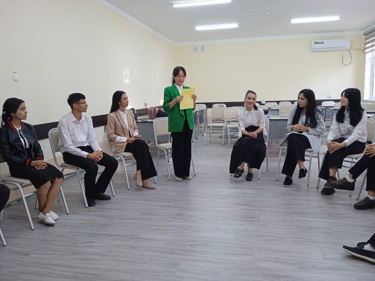 Navoiy viloyati yuridik texnikumida birinchi bosqich o'quvchi talabalari o'rtasida texnikum shart-sharoitlariga tez va oson moslashish va jamoada ijobiy muhitni shakllantirish maqsadida "BIZ BIR JAMOAMIZ" deb nomlangan trening o'tkazildi.