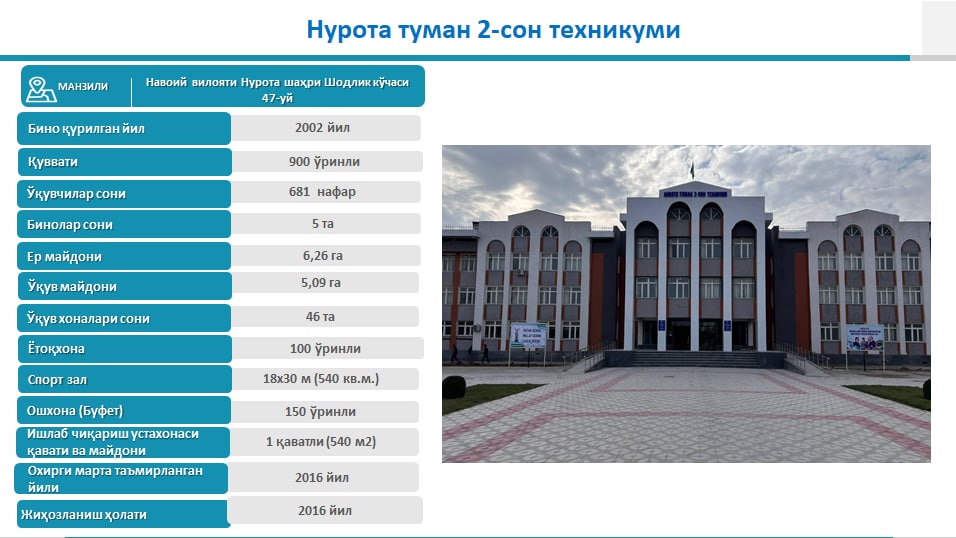 Texnikum joylashgan joyi (pochta manzili) pochta indeksi – 210700